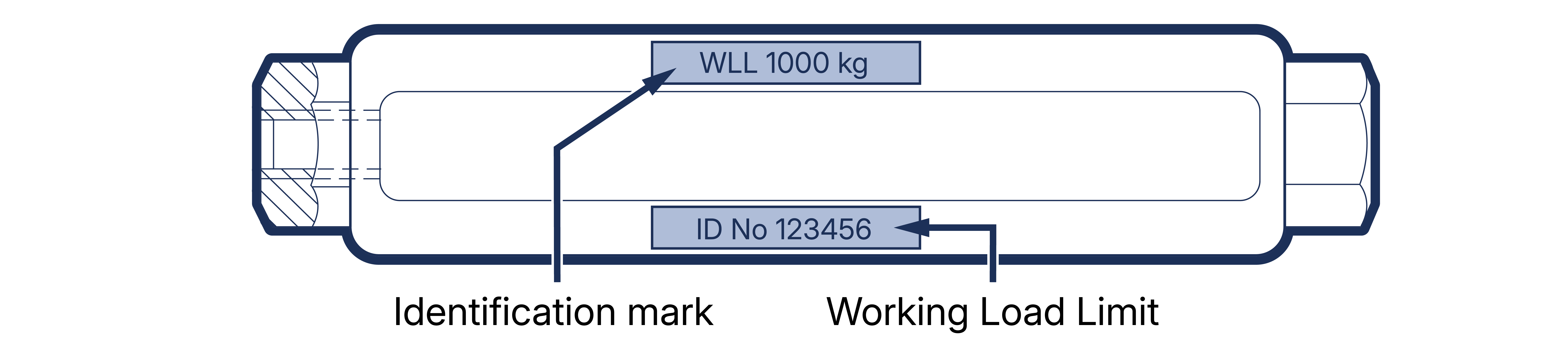 In addition to the information required by the applicable supply legislation, rigging screws and turnbuckles used for lifting purposes should be marked with the following information.