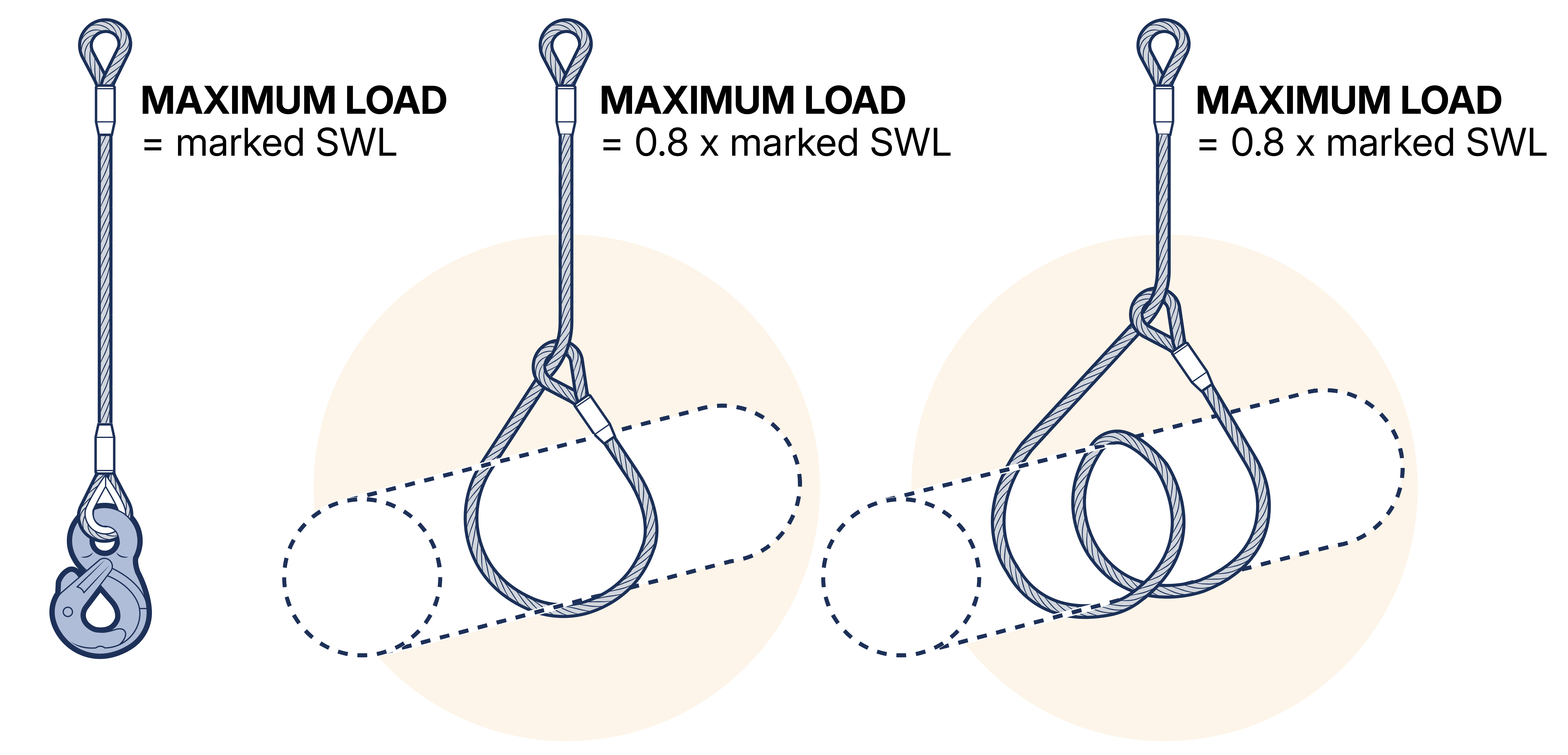 Whilst the reduced SWL applicable to a sling used in this way may be precisely calculated, the adoption of the following simple rules will ensure that the sling is never overloaded. The marked SWL should be multiplied by the appropriate factor as shown in the following table.