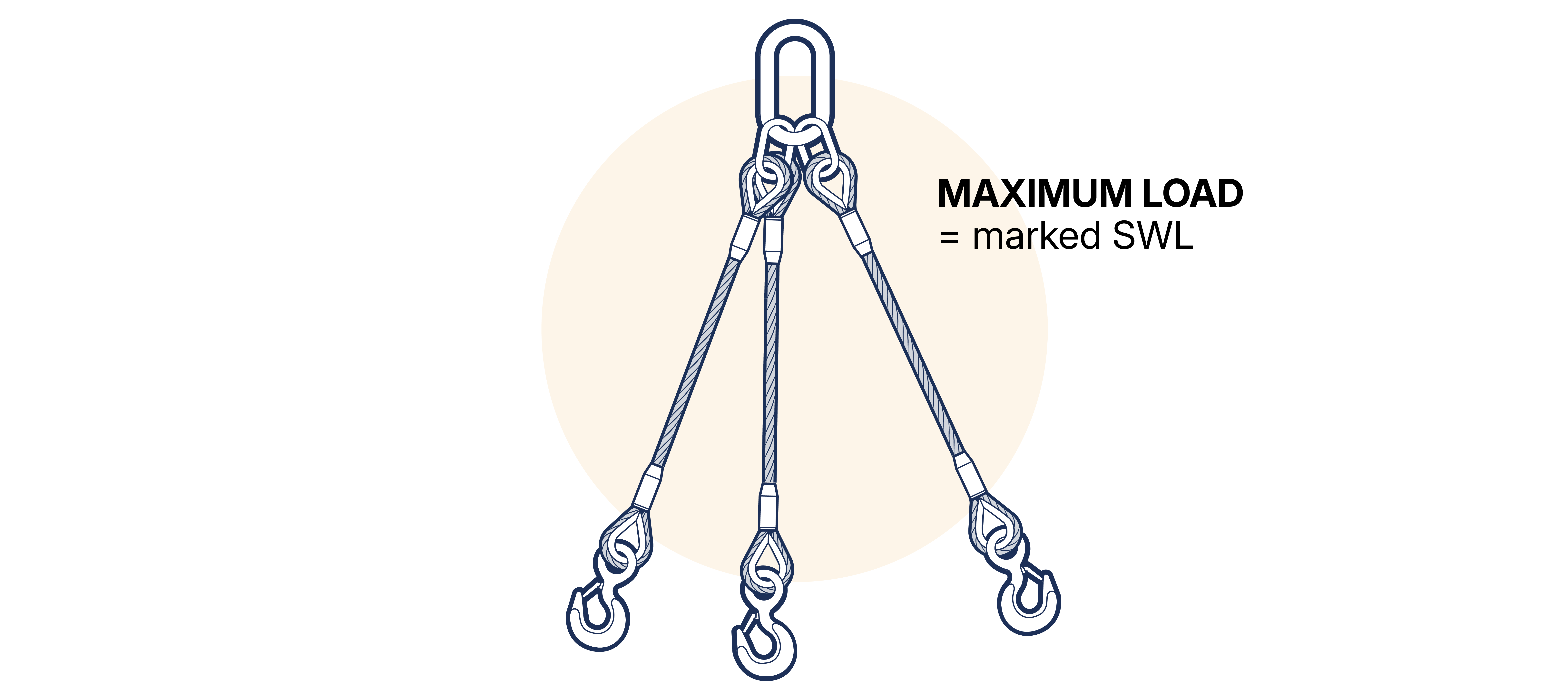 When the sling is used for a straight lift, the maximum load to be lifted must not exceed the SWL marked on the sling for the appropriate range of angles. (See Figure 15.5.2.4-1 )
