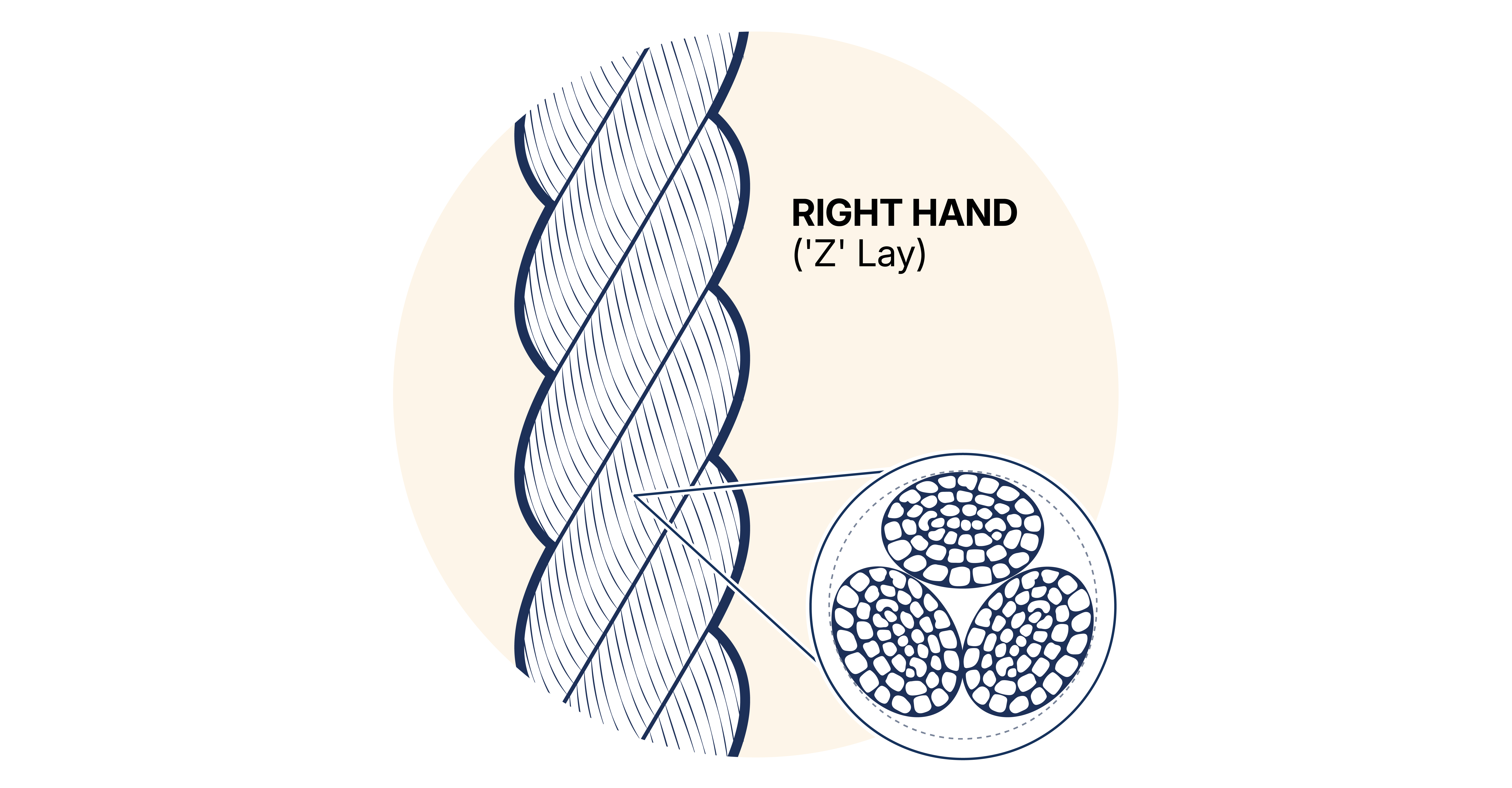 Eight strand plaited rope is constructed from eight strands of yarns spun from fibres. The strands are laid together in pairs, each alternative pair consisting of two left hand (S twist) strands and two right hand (Z twist) strands respectively. (See Figure 18.3.2-1 ) The eight strands collectively contain the same number of yarns as the three strand rope of equivalent size. Hence the weights and breaking strengths of both constructions are the same size for size.