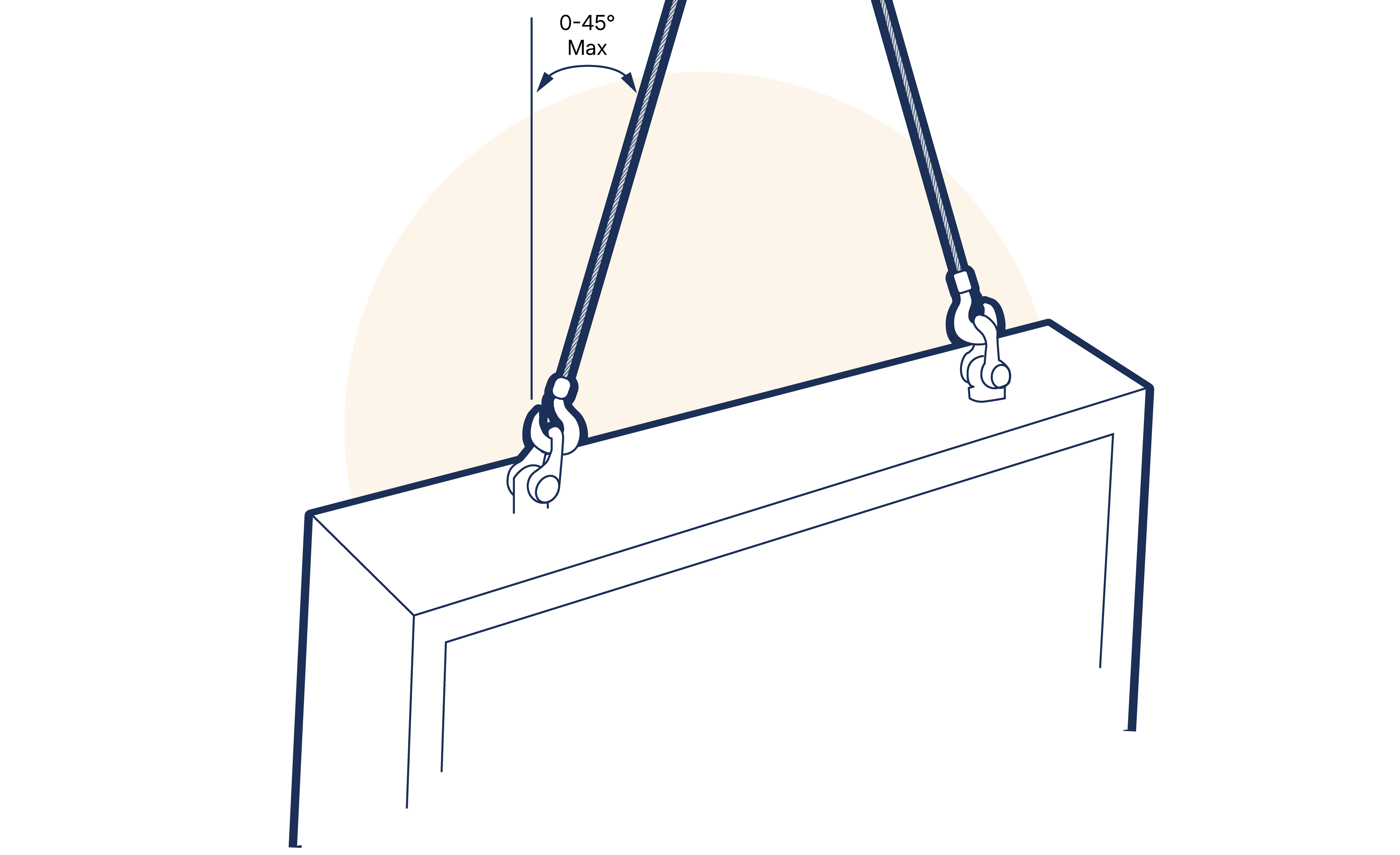 Two leg sling 0-45° (included angle 0-90°) = 1.4 x WLL of a single leg