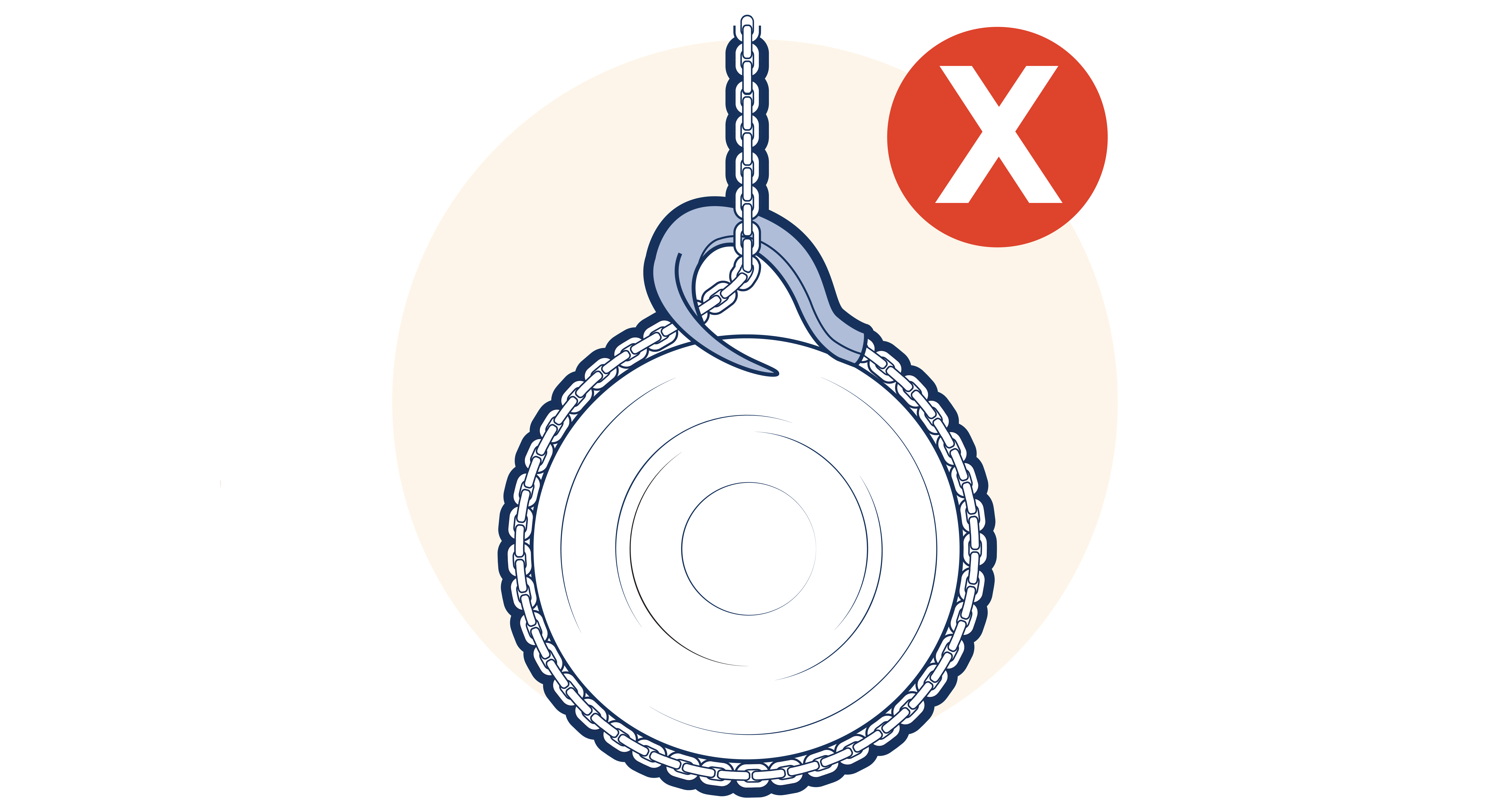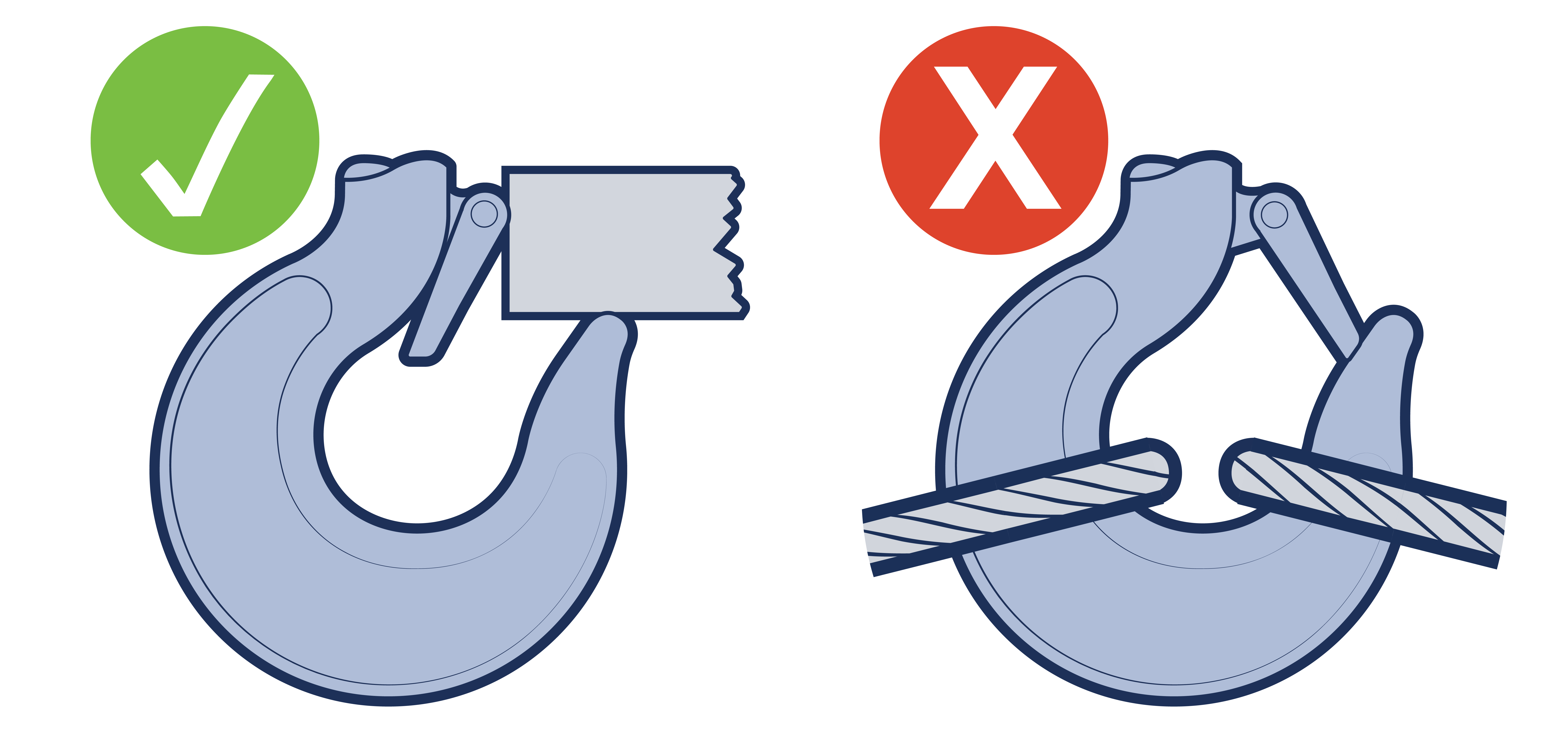 The bottom hook should be attached to the load such that no part of the load is in contact with the point of the hook. (See Figure 4.11-2 )