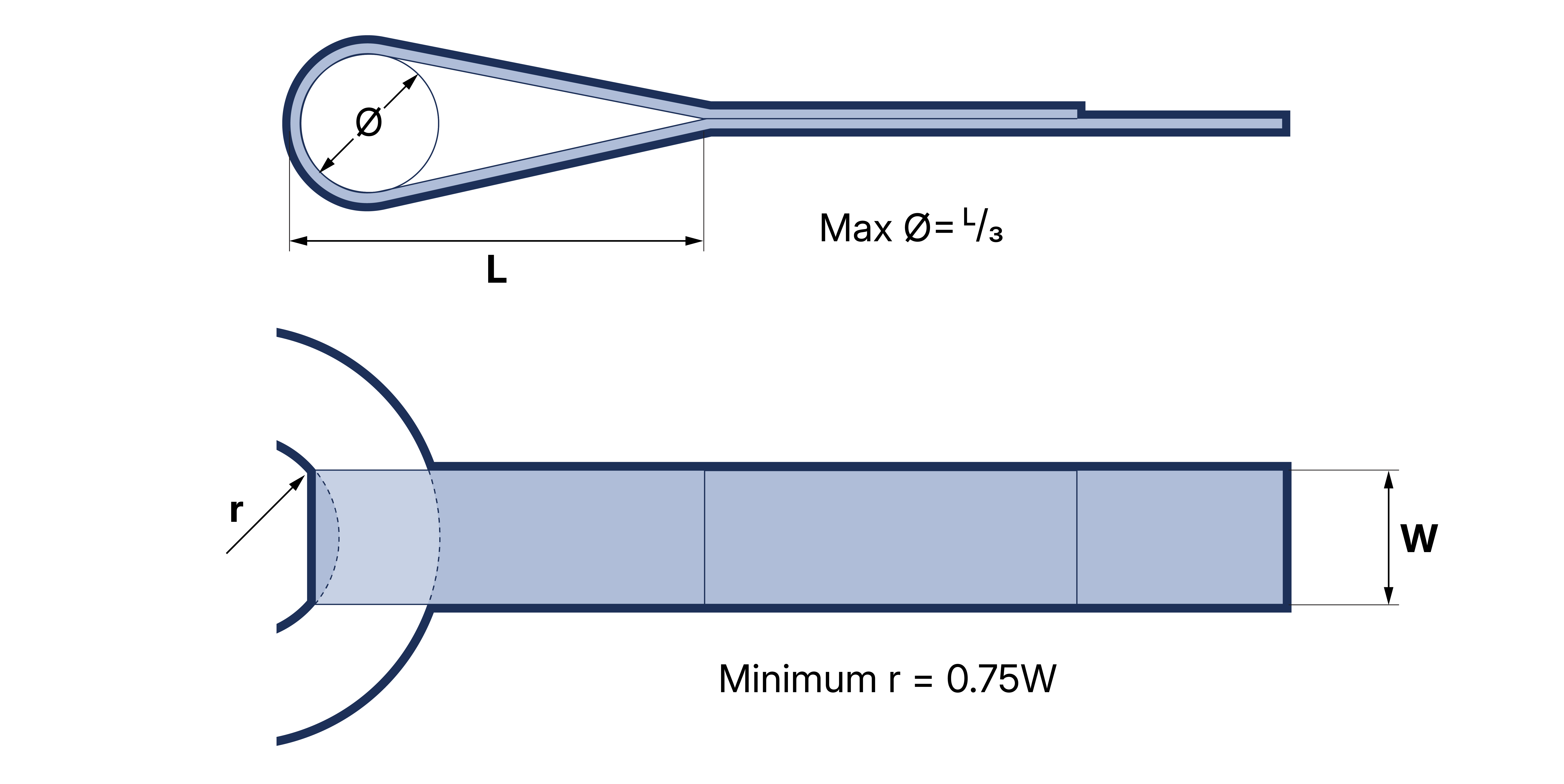 Where the bearing width of the eye is greater than 75mm, the fitting should be straight. It is however recommended that the use of such slings is avoided and that a sling with integral terminal fittings is used.