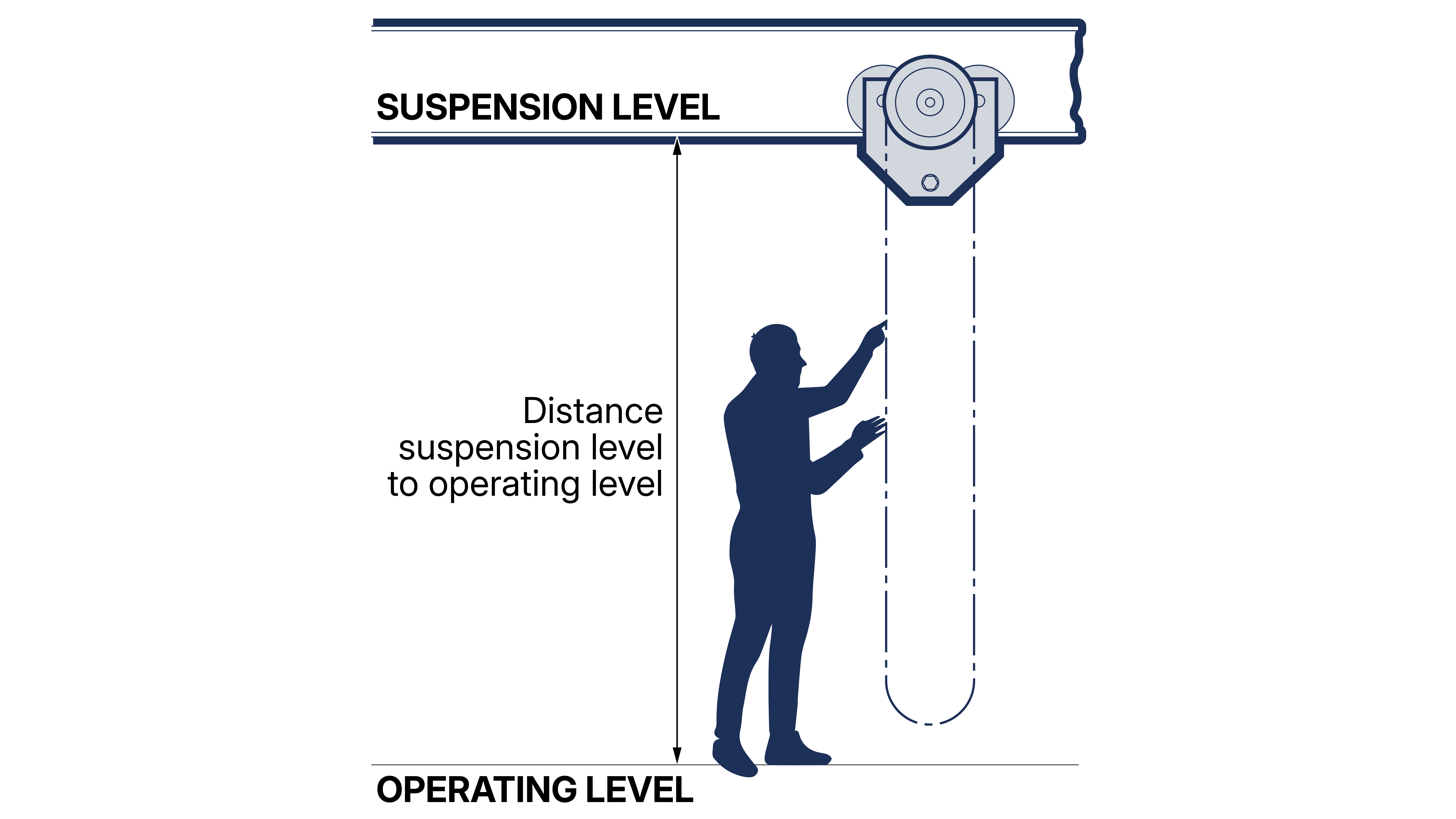8.3.3 Operating LevelThe operating level is the level on which the operative stands. (See Figure 8.3.3-1 )Figure 8.3.3-1 Parent topic: 8.3 DEFINITIONSPrevious topic: 8.3.2 Suspension LevelNext topic: 8.3.4 Load Bar