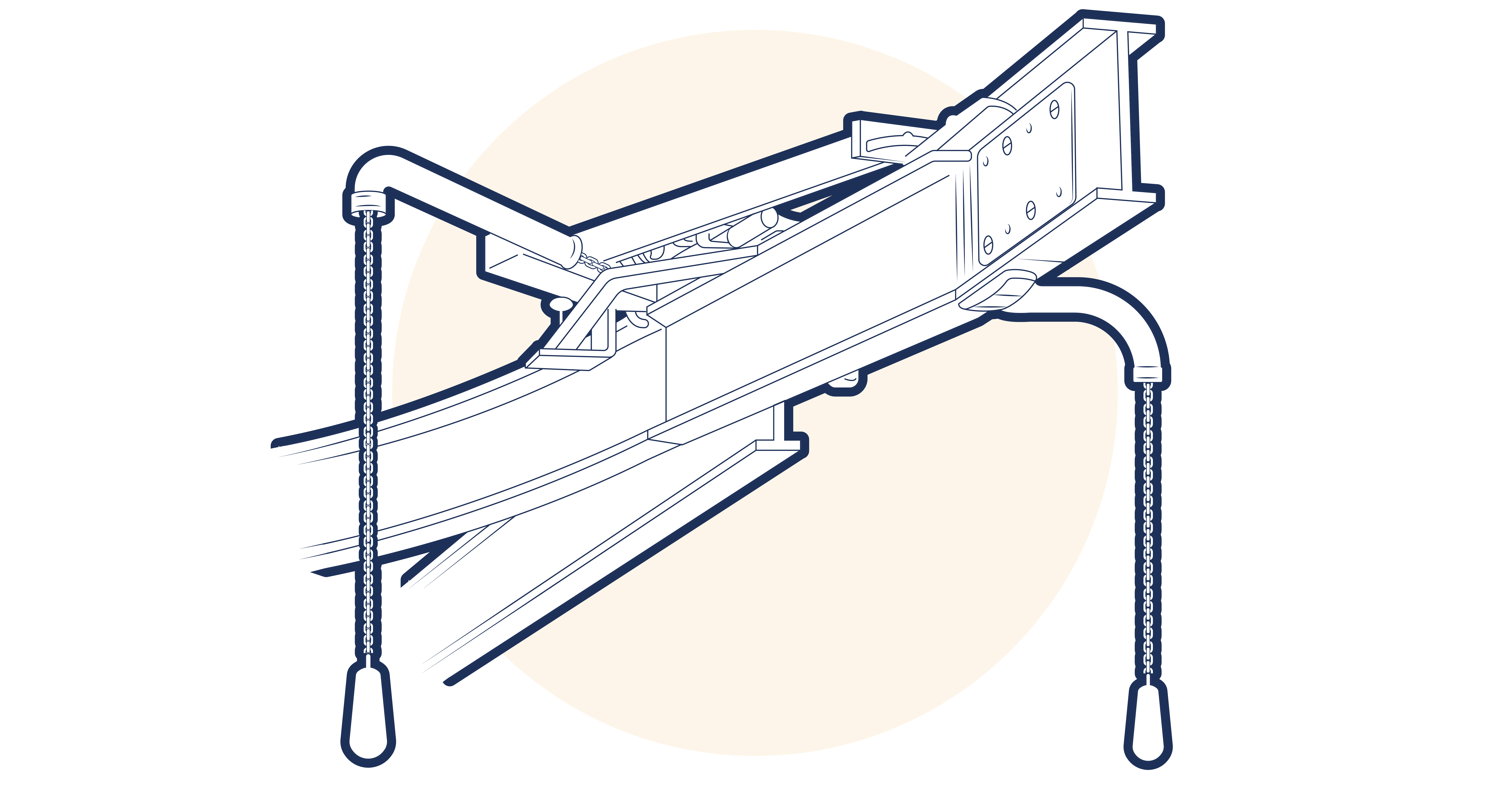 The use of a runway switch, as shown in Figure 11.4.5-1 , allows the lifting appliance to be diverted from one runway system to another adjacent system.