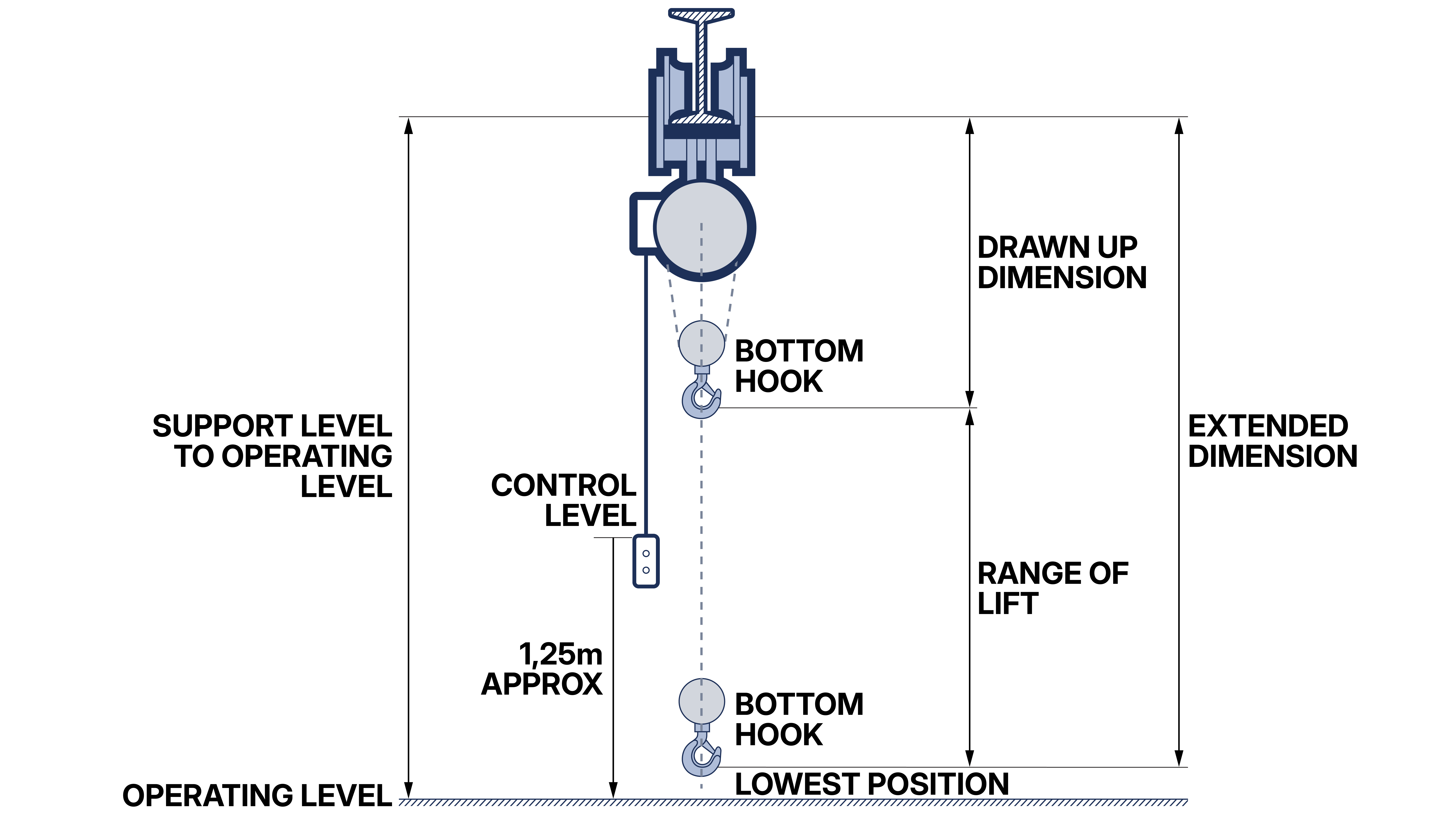 The extended dimension is the distance between the support level and the bottom hook seat in the extended position. (See Figure 6.3.7-1 )