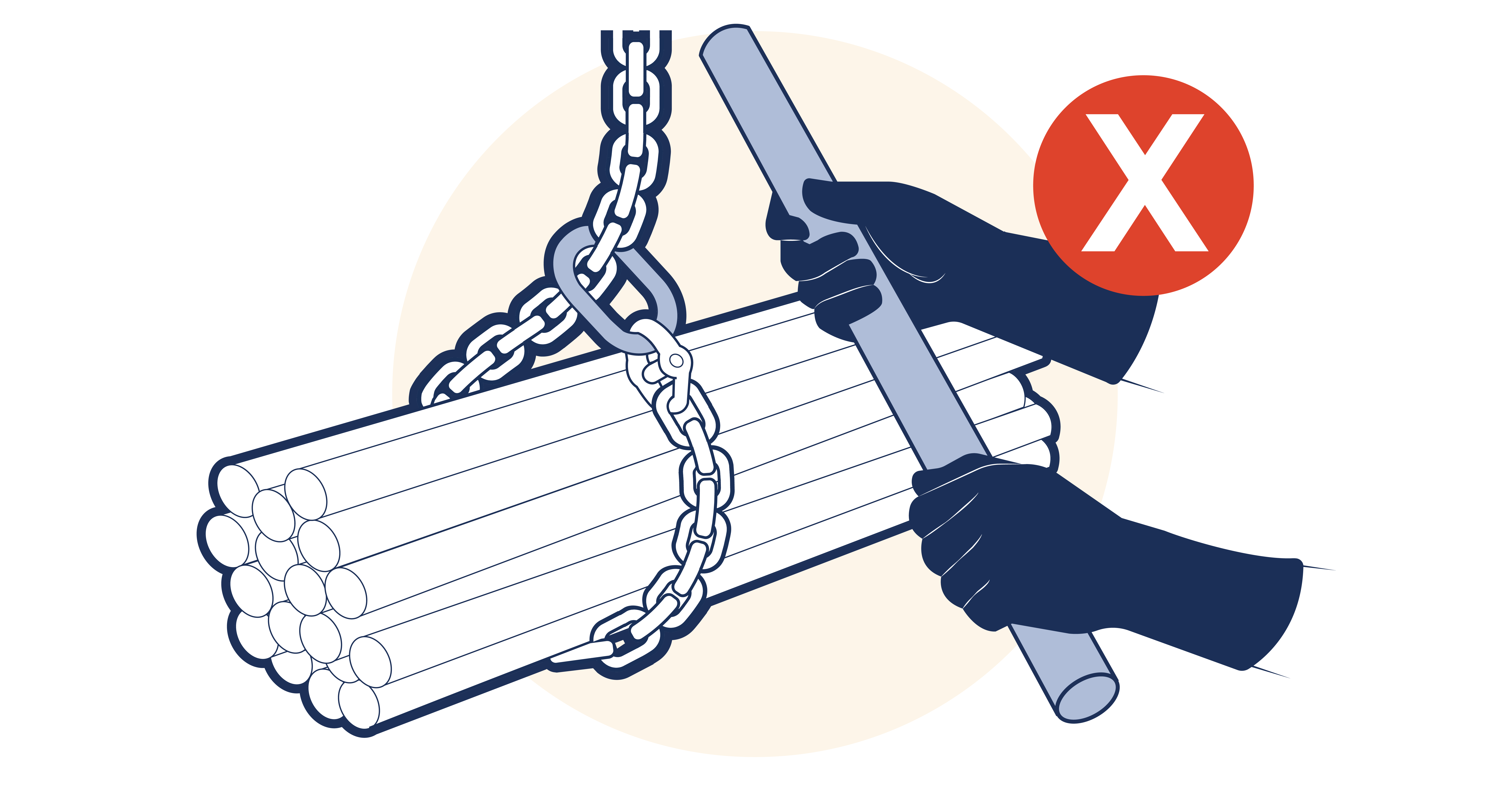 The sling should be arranged with the centre of gravity of the load directly below the master link of the sling so that the load is balanced with no change of attitude when the lift is made. (See section 1 1.A3 APPENDIX 3 - LOAD SECURITY - BALANCE AND STABILITY) A trial lift should be made prior to the full lifting operation. If the load is not balanced, it should be lowered and the slings repositioned or adjusted using shortening devices. Never reposition chain slings by hammering, either to bring an unequally balanced load into balance or, in the case of choke hitch, to tighten the bight. (See Figure 14.10-1 ) When used in choke hitch, the bight should be allowed to assume its own position, i.e. the three parts being approximately 120° apart.