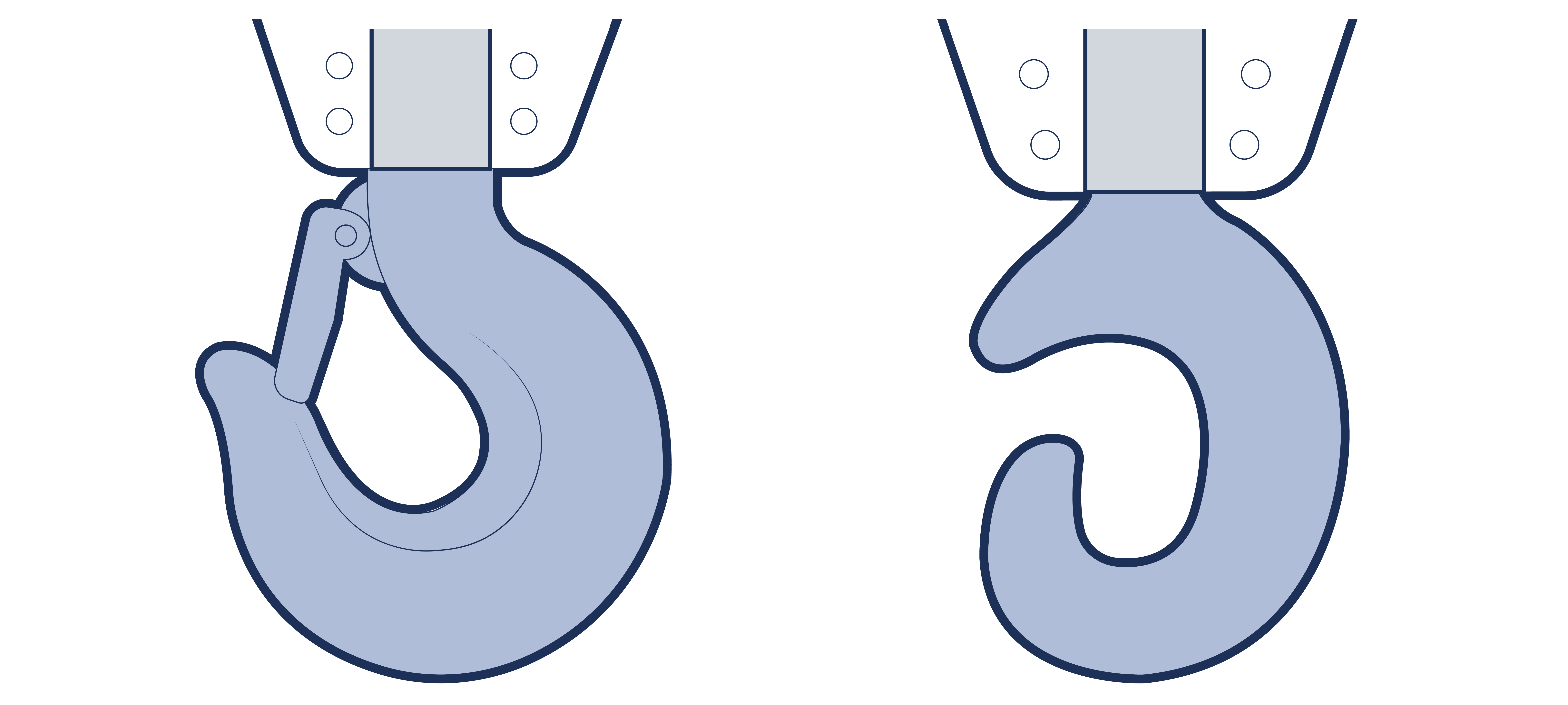 Hooks and other similar devices provided for lifting should be of a type that reduces the risk of the load becoming displaced from the hook or other devices.