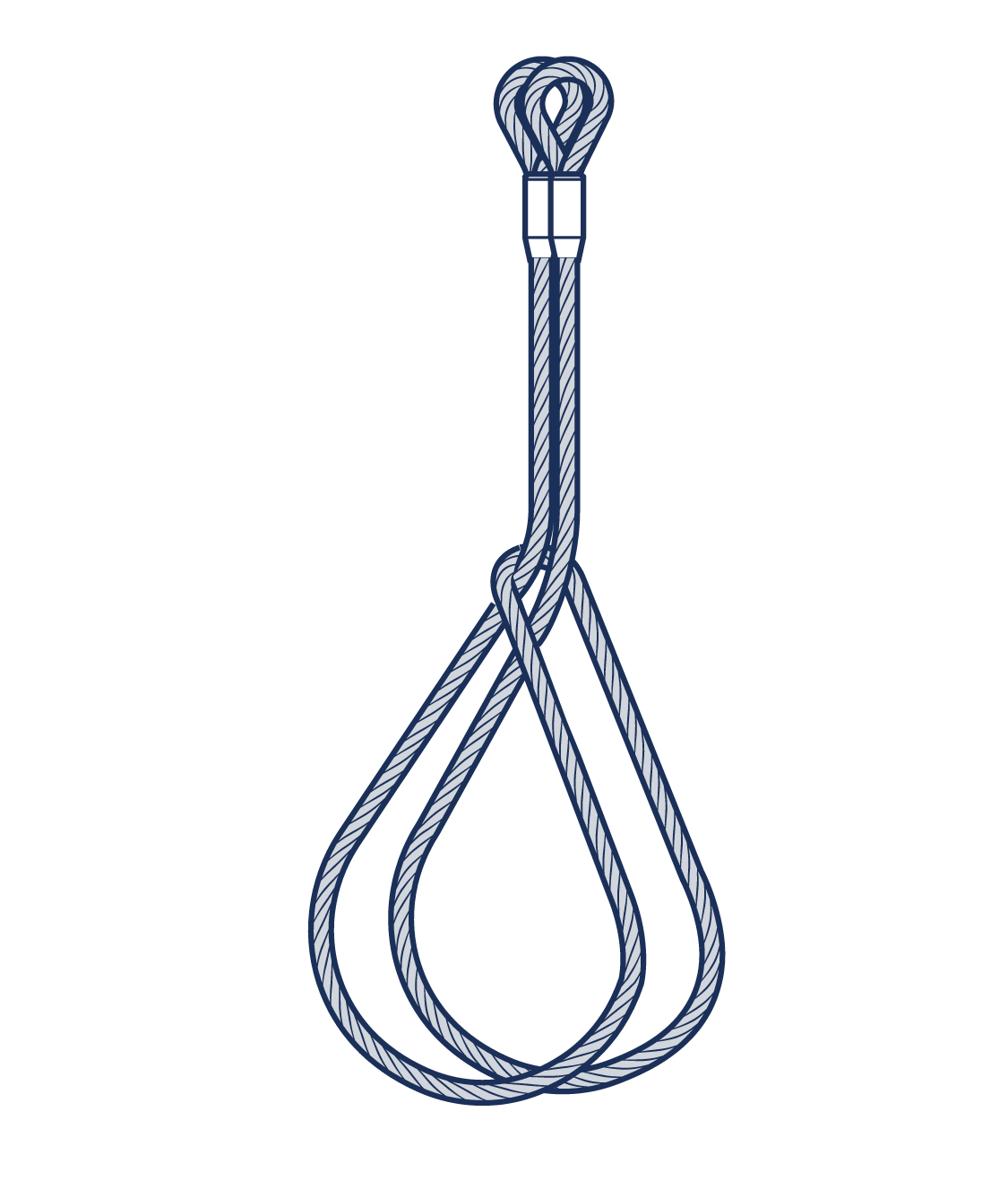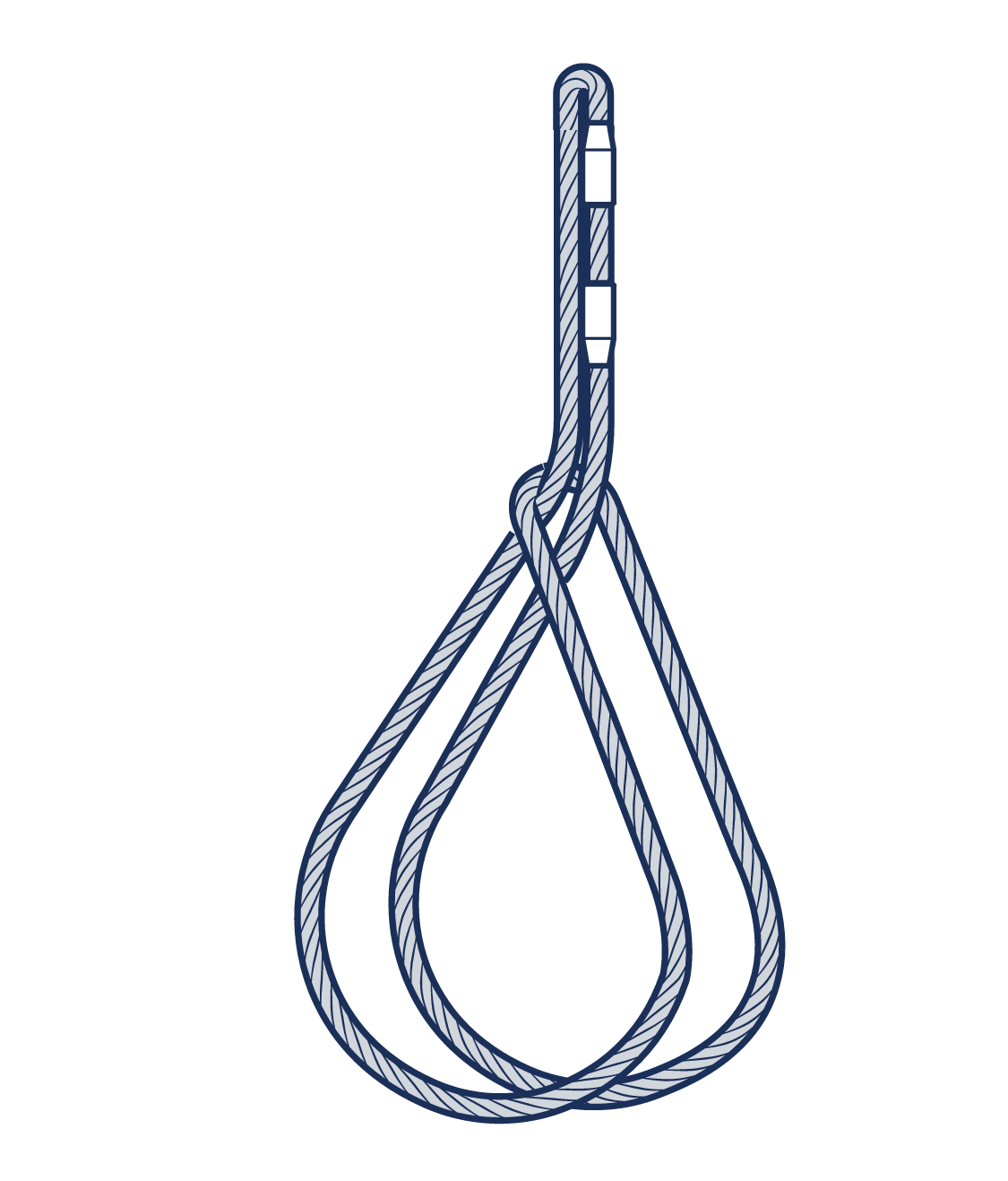 Double choke hitch is a variation of choke hitch where the load is carried on two parts and for this reason the SWL in choke hitch may be varied in accordance with the manufacturer’s or supplier’s advice. Where this is not available, the single choke hitch rating should be used. (See Figure 1.A5.5.4.6-1 ) This is sometimes known as ‘halshing’.