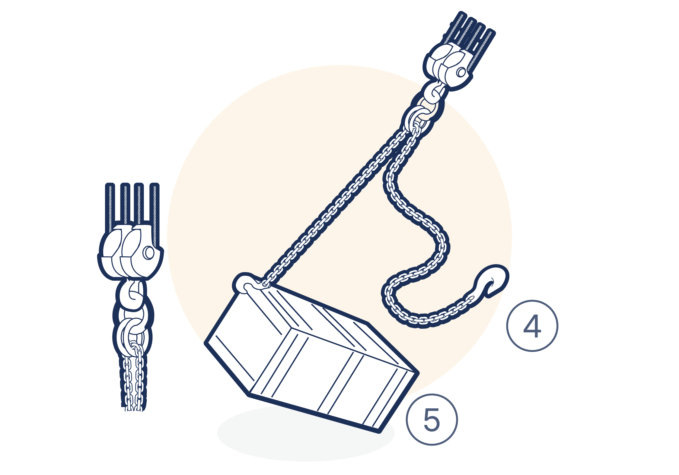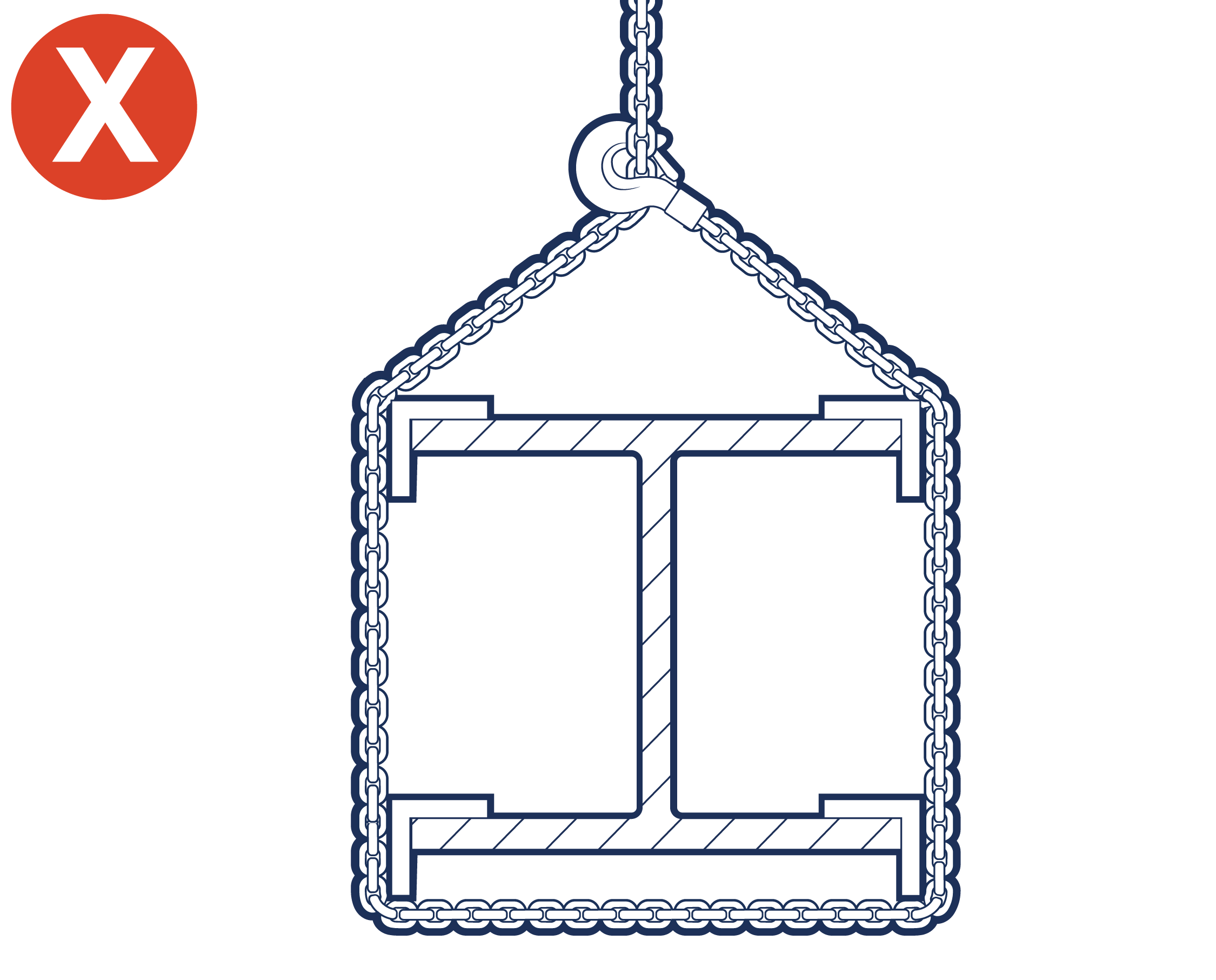 If any of the assumed conditions are not met, then it is possible that a large portion of the load will be imposed on only one or, at best, two legs of the sling. In such circumstances, it should be assumed that all of the load is being carried by one leg, so the sling should be de-rated accordingly as described in the following paragraph by assuming that only one leg is in use.