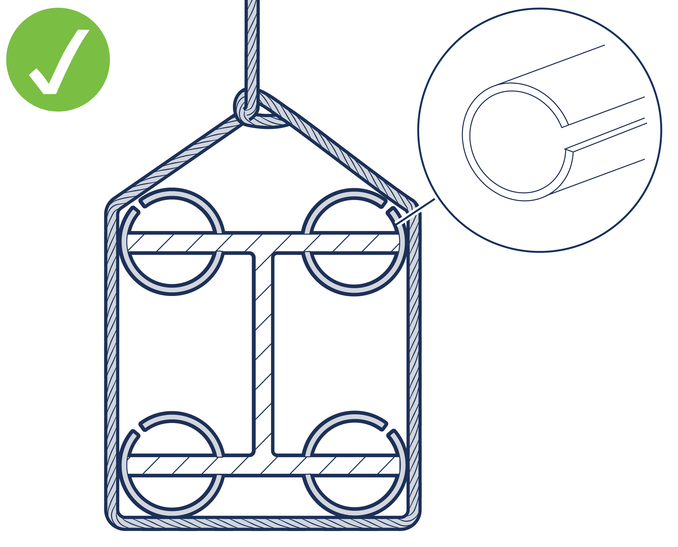 The slinging method should ensure that the load is secure and that the load will not fall from the sling.