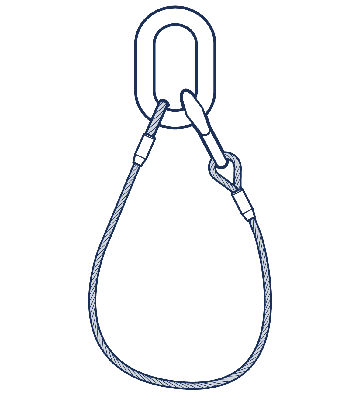 A single or multi-leg sling may be used with the legs straight if, for example, the legs are terminated in a hook(s) which can be attached directly to a suitable lifting point on the load as shown in Figure 1.A5.4.2.1-1 , Figure 1.A5.4.2.1-2 , Figure 1.A5.4.2.2-1 , Figure 1.A5.4.2.3-1 and Figure 1.A5.4.2.4-1 . There is no particular problem in this method of use provided, of course, that normal precautions are observed and the angle factor, in the case of multi-leg slings, is taken into account.
