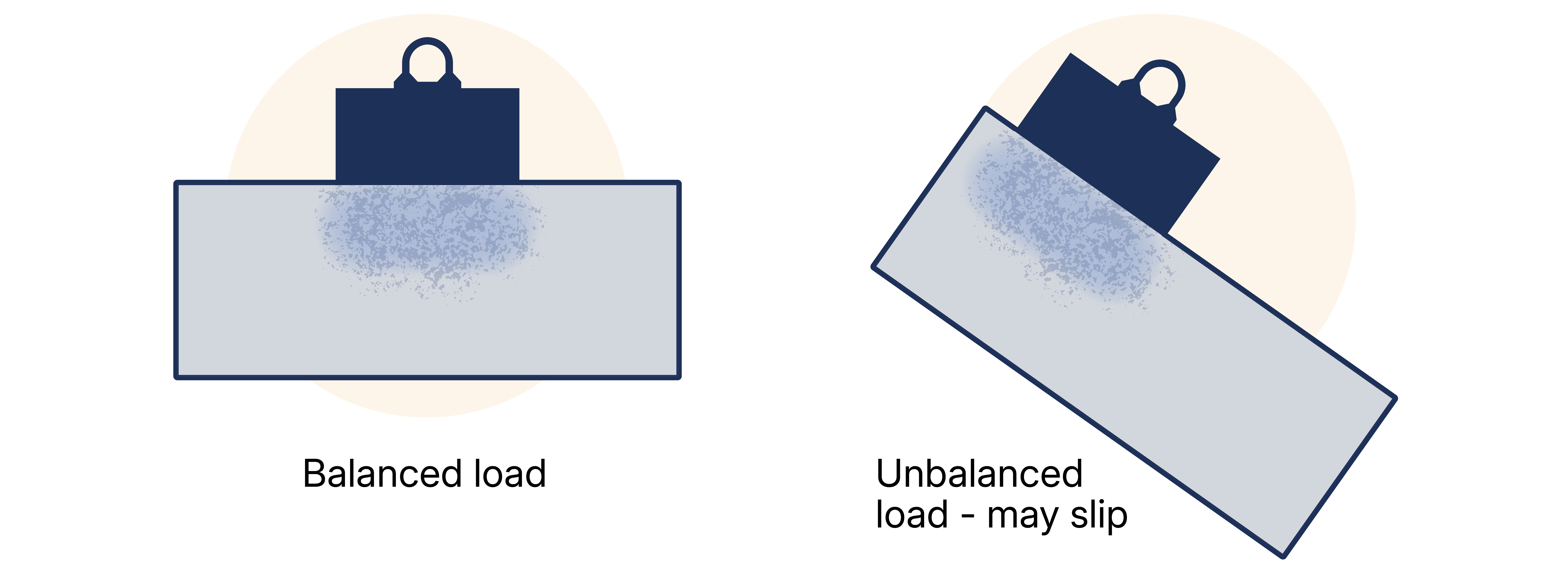 Ensure the load is balanced. An unbalanced load will tilt and may become detached by slipping.