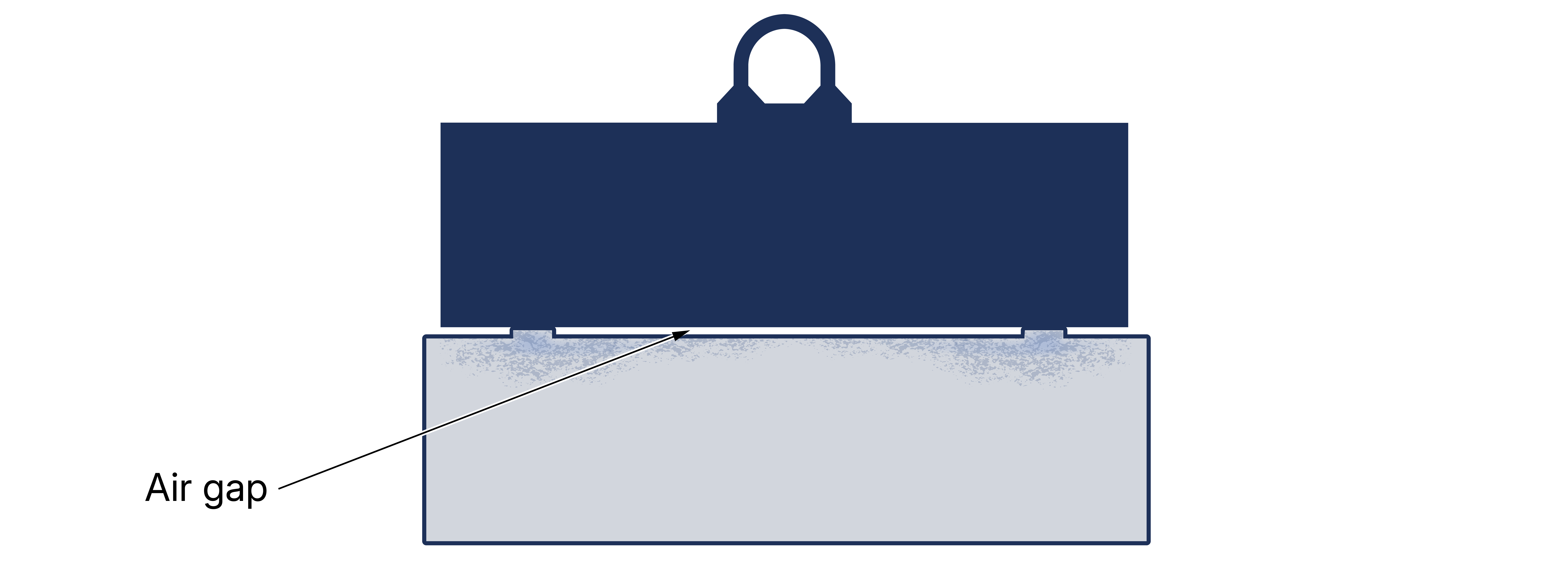 Ideally, the surface of the load to be lifted magnetically should be flat such that intimate contact with the sole plate of the magnetic lifter is made. An air gap may however be present due to an irregular shape, surface texture or surface coating. If so the capability of the magnet to lift the load should be checked by the artificial air gap test. If in doubt the advice of the manufacturer should be sought. Air gaps are tolerable within the limits laid down by the manufacturer.