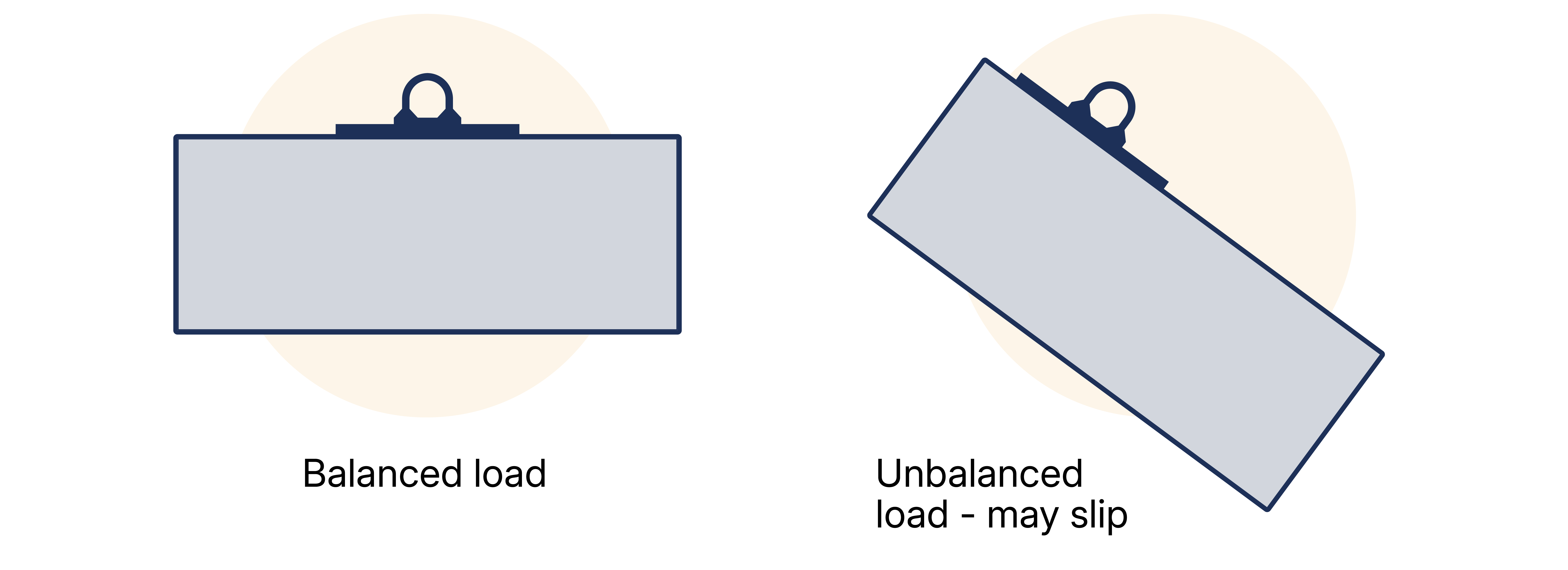 Ensure the load is balanced. An unbalanced load will tilt and may become detached by slipping.