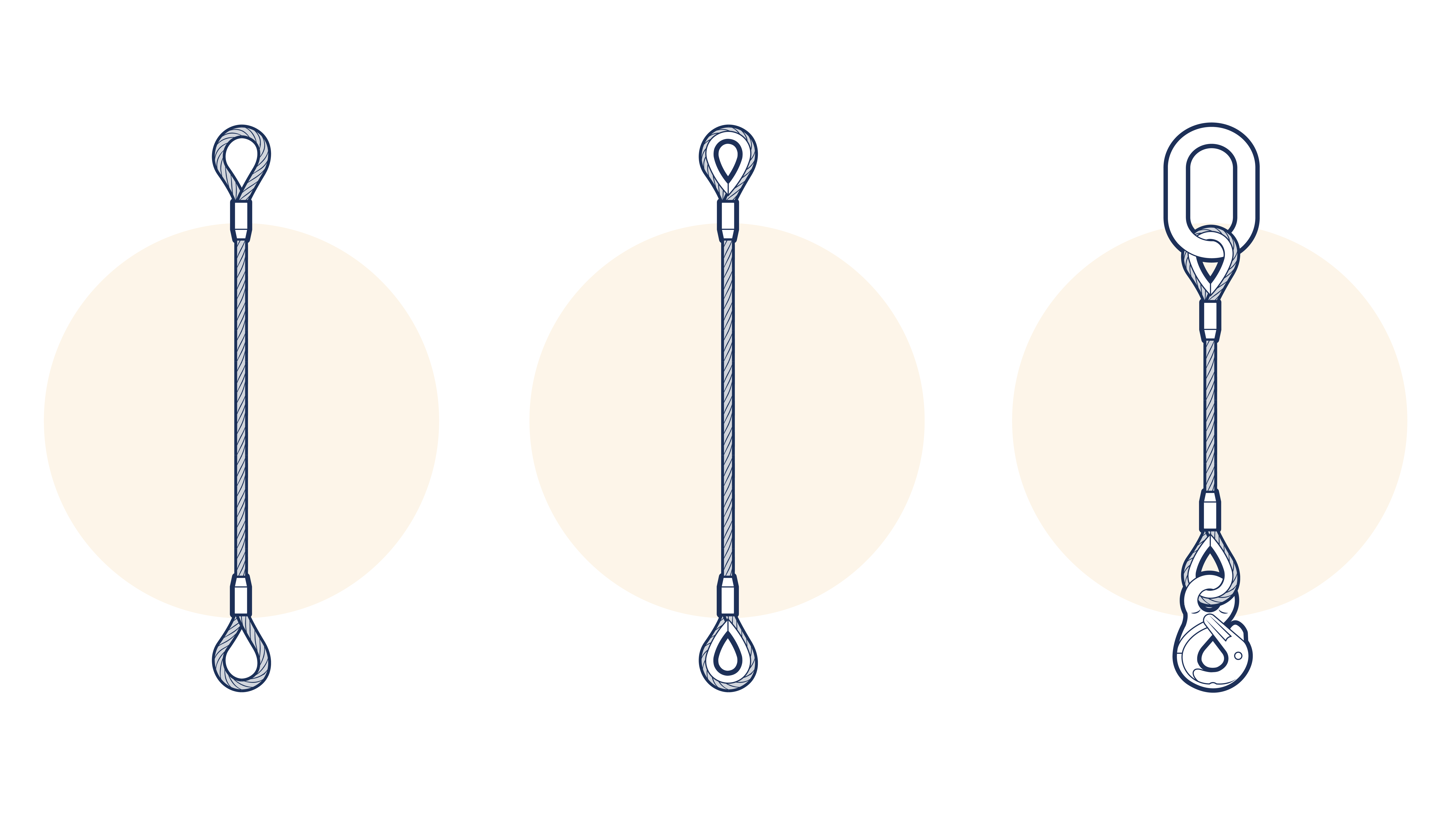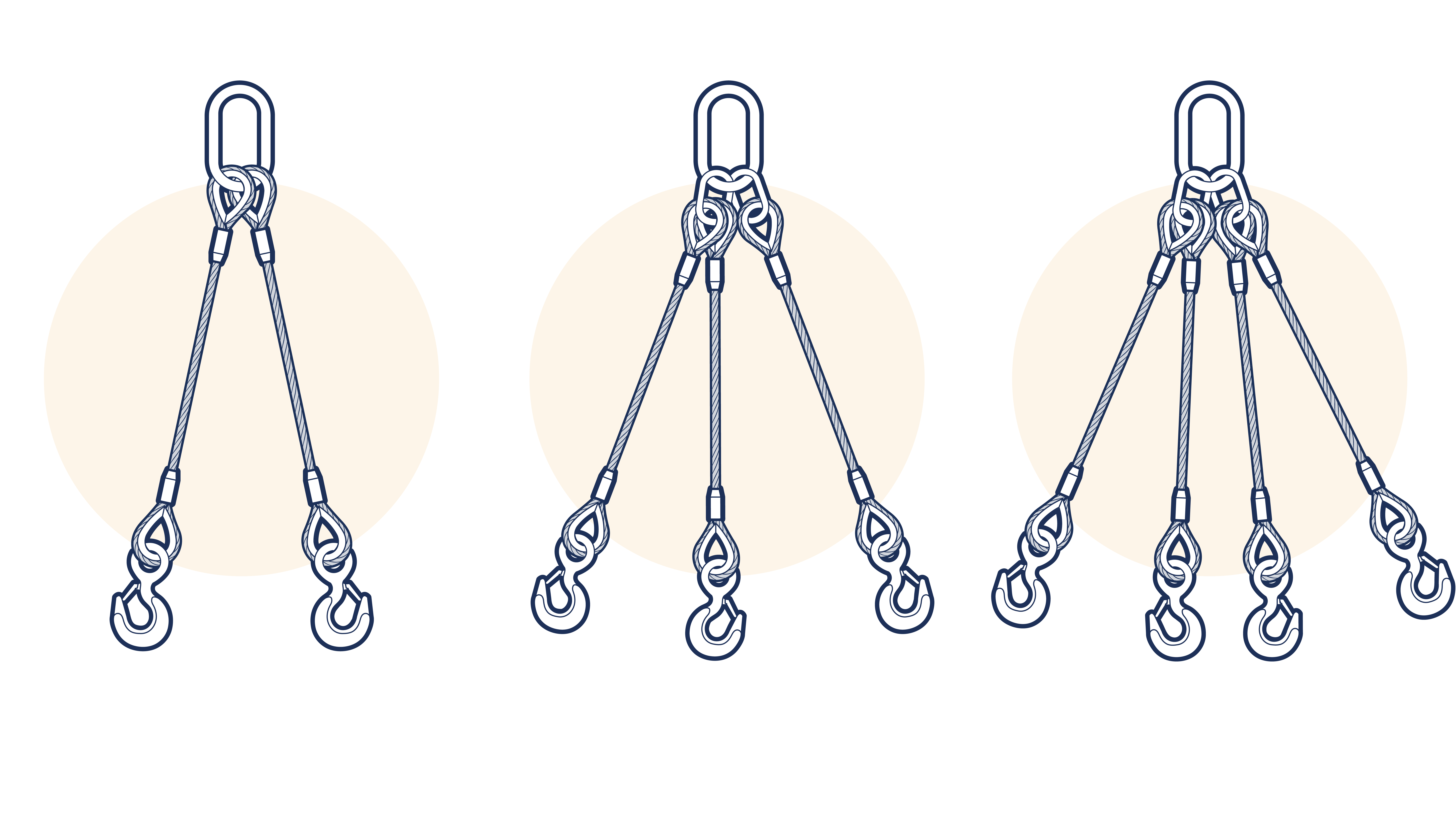 This subsection illustrates the most common wire rope sling assemblies.. Other special assemblies may be devised for lifting specific unusually shaped loads. Sling legs may be single part or double part with hand spliced or ferrule secured eyes.
