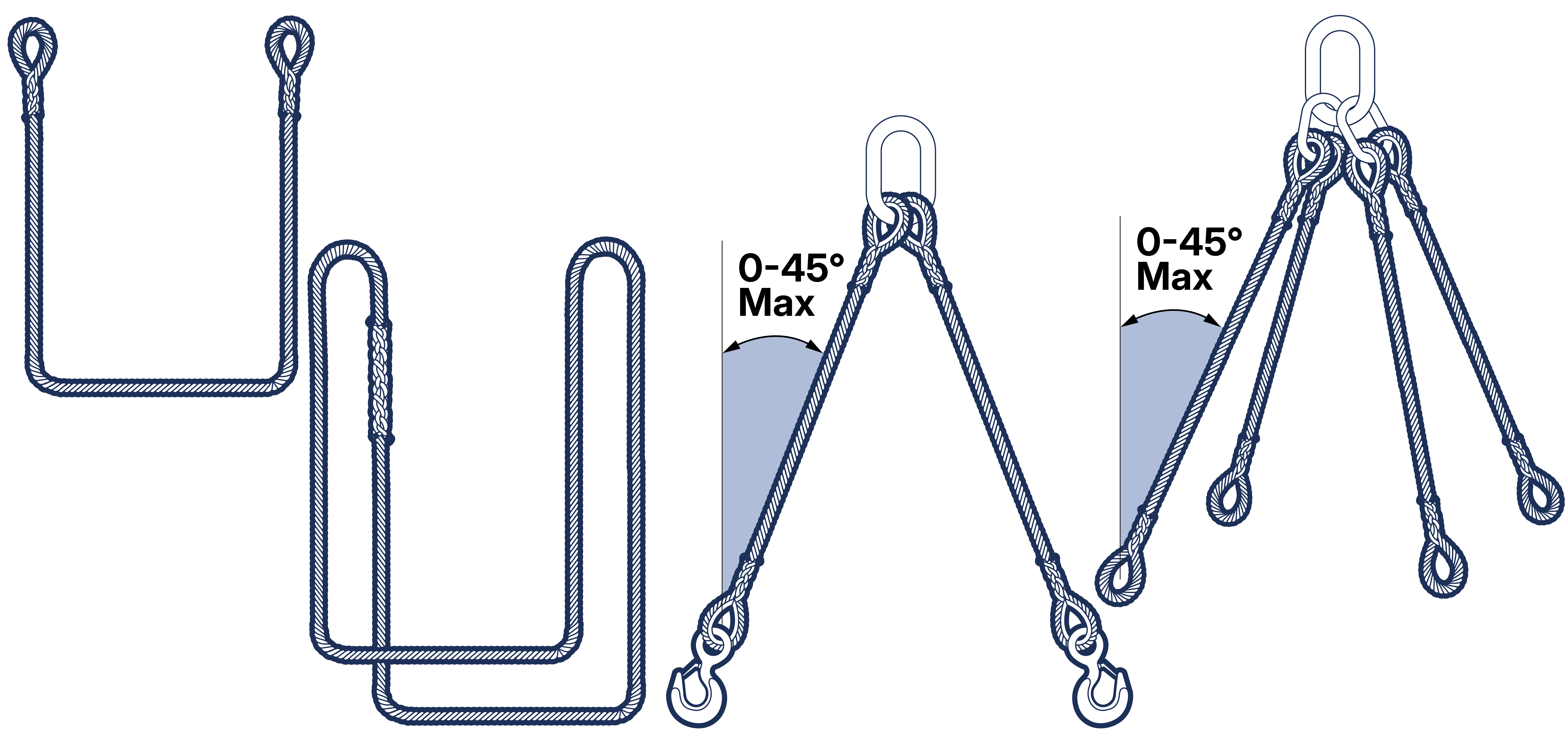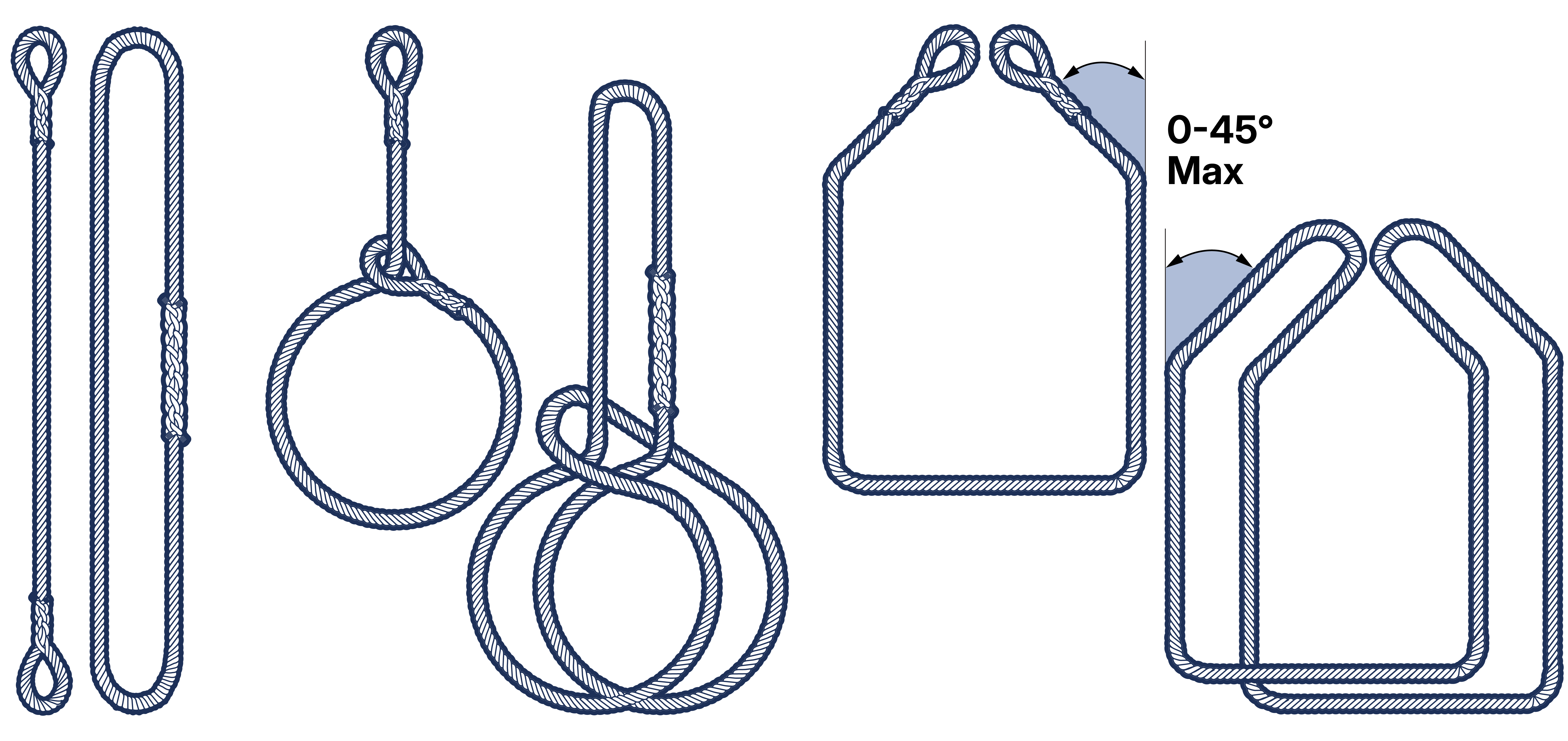 The geometry of the slinging arrangement, i.e. mode of use, calls for a further factor to be applied to the marked SWL to arrive at the maximum load that may be lifted by the sling in a particular configuration. (See Figure 18.5.6-1 and Figure 18.5.6-2 )