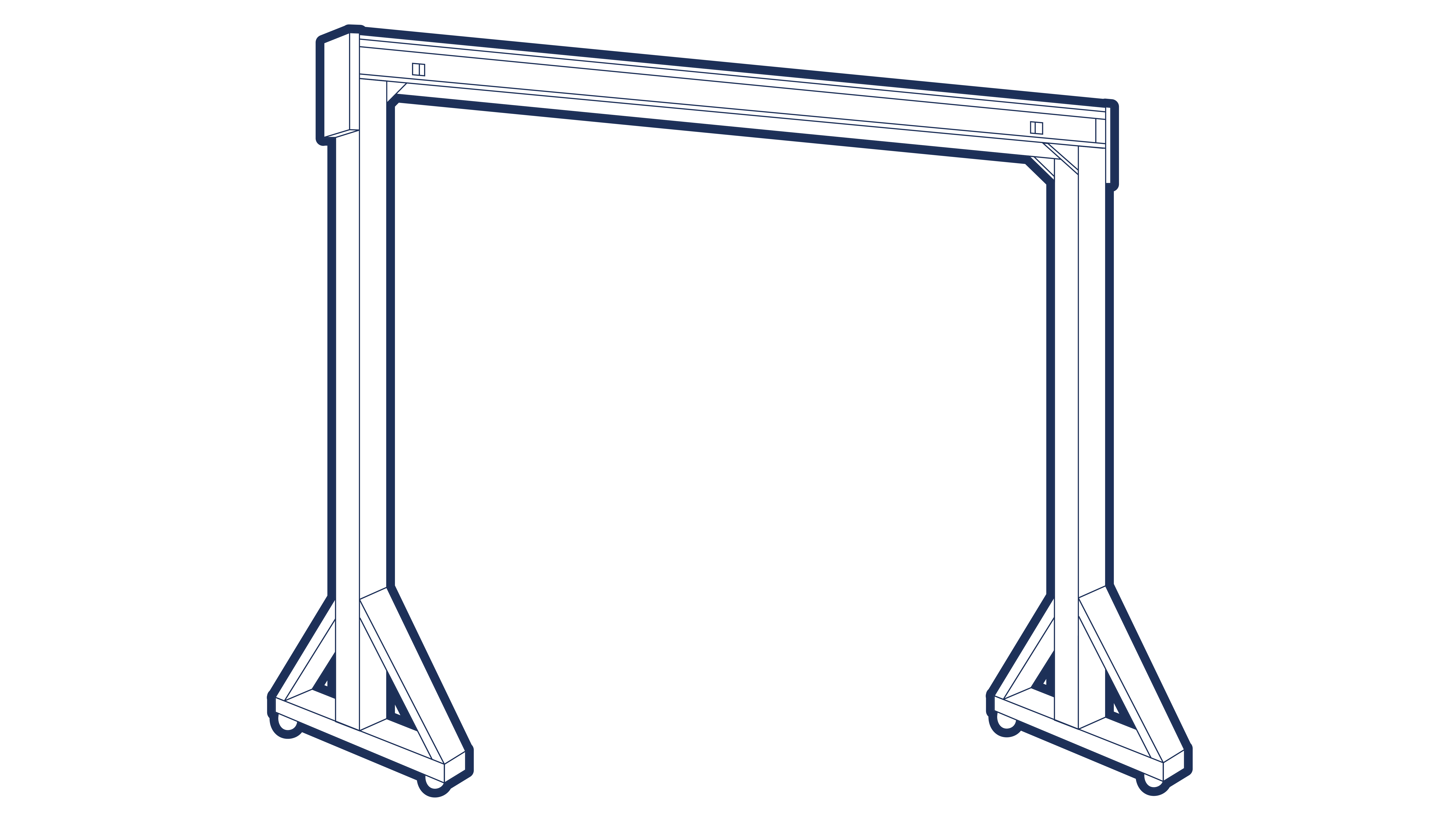 The simplest form of mobile supporting structure is the goalpost type. This comprises a runway beam, often of proprietary track section, with single column supports. Lateral stability is provided by a base member on which the column is mounted. This design is limited to light loads, usually up to 500kg, and light duty applications. (See Figure 12.4.1-1 )
