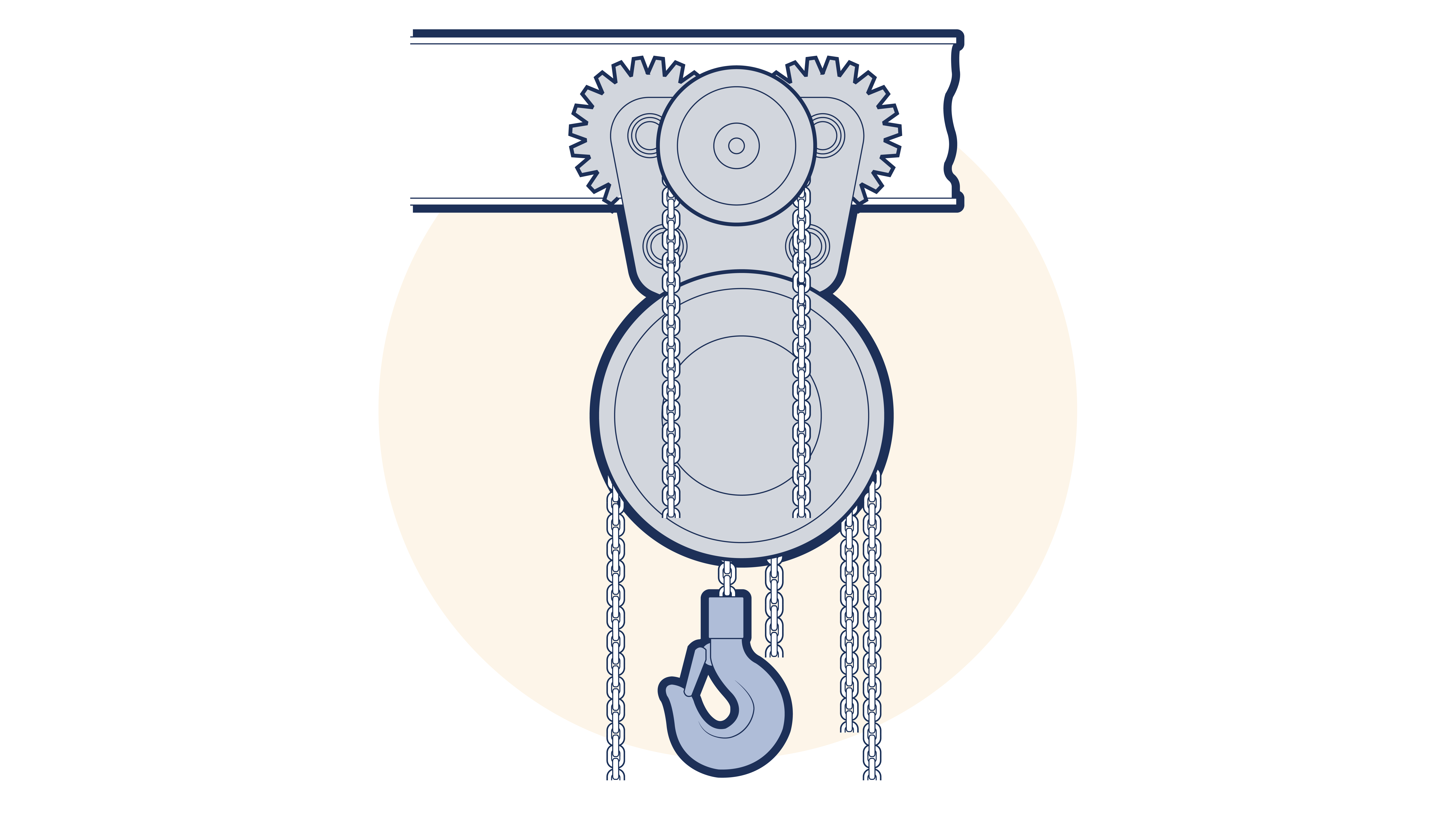 The plain trolley is fitted with a device in the form of a load bar, hook, or eye from which a lifting appliance may be suspended by its head fitting. Other trolleys are designed to have the lifting appliance permanently attached, these are known as ‘combined’ or ‘built in’ trolleys. (See Figure 8.4.1-1 )