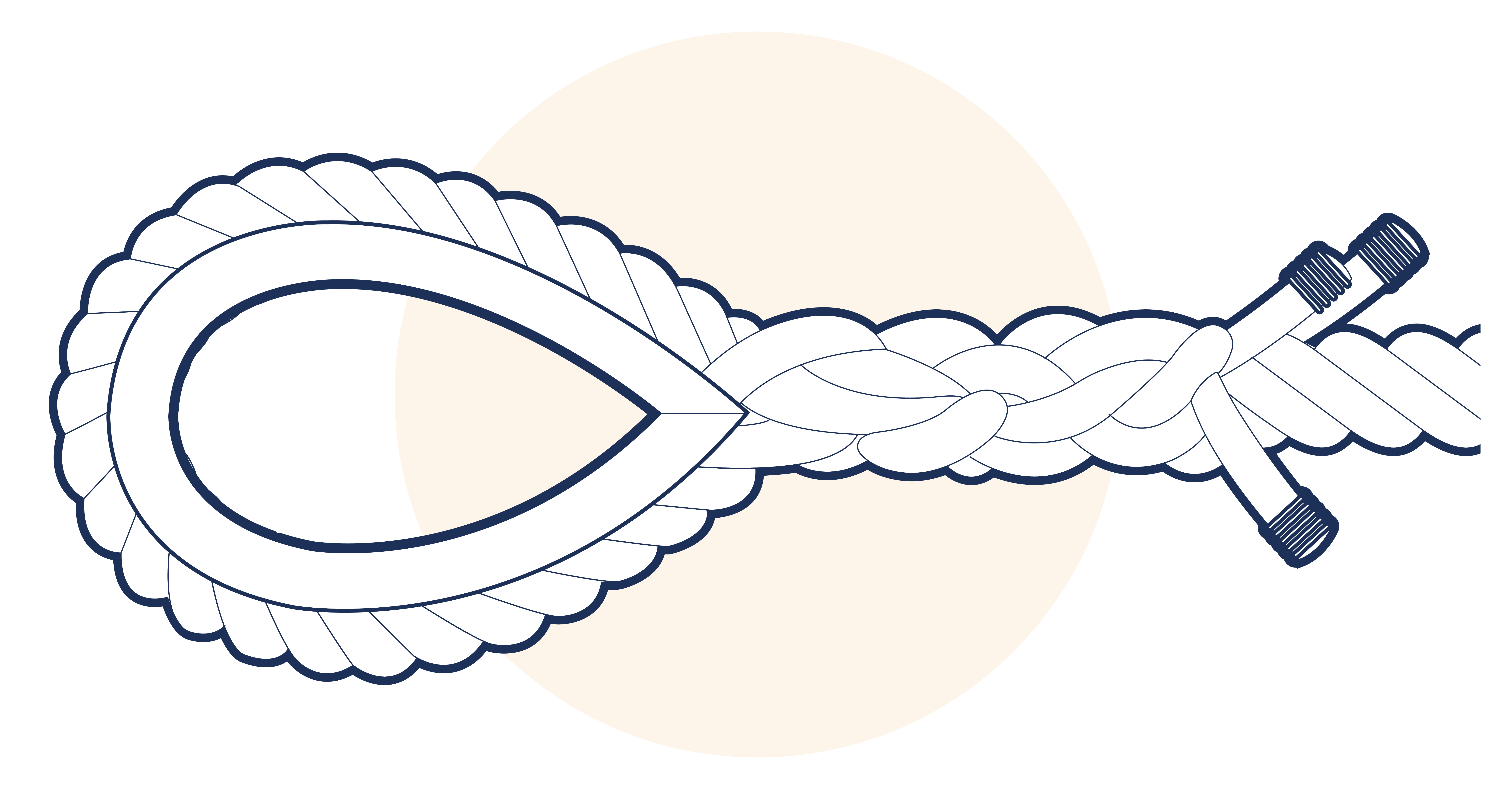 A thimbled, or hard eye, is an eye which is made around a heart shaped thimble to give internal protection to the eye and to maintain its shape. It is used where terminal fittings are made onto the sling or where conditions are arduous and it is desirable to protect the inside of the eye from abrasion. (See Figure 18.3.6-1 ) Larger thimbles, known as reeving thimbles, which permit one eye to pass through another may be fitted when a sling is required for use in choke hitch.
