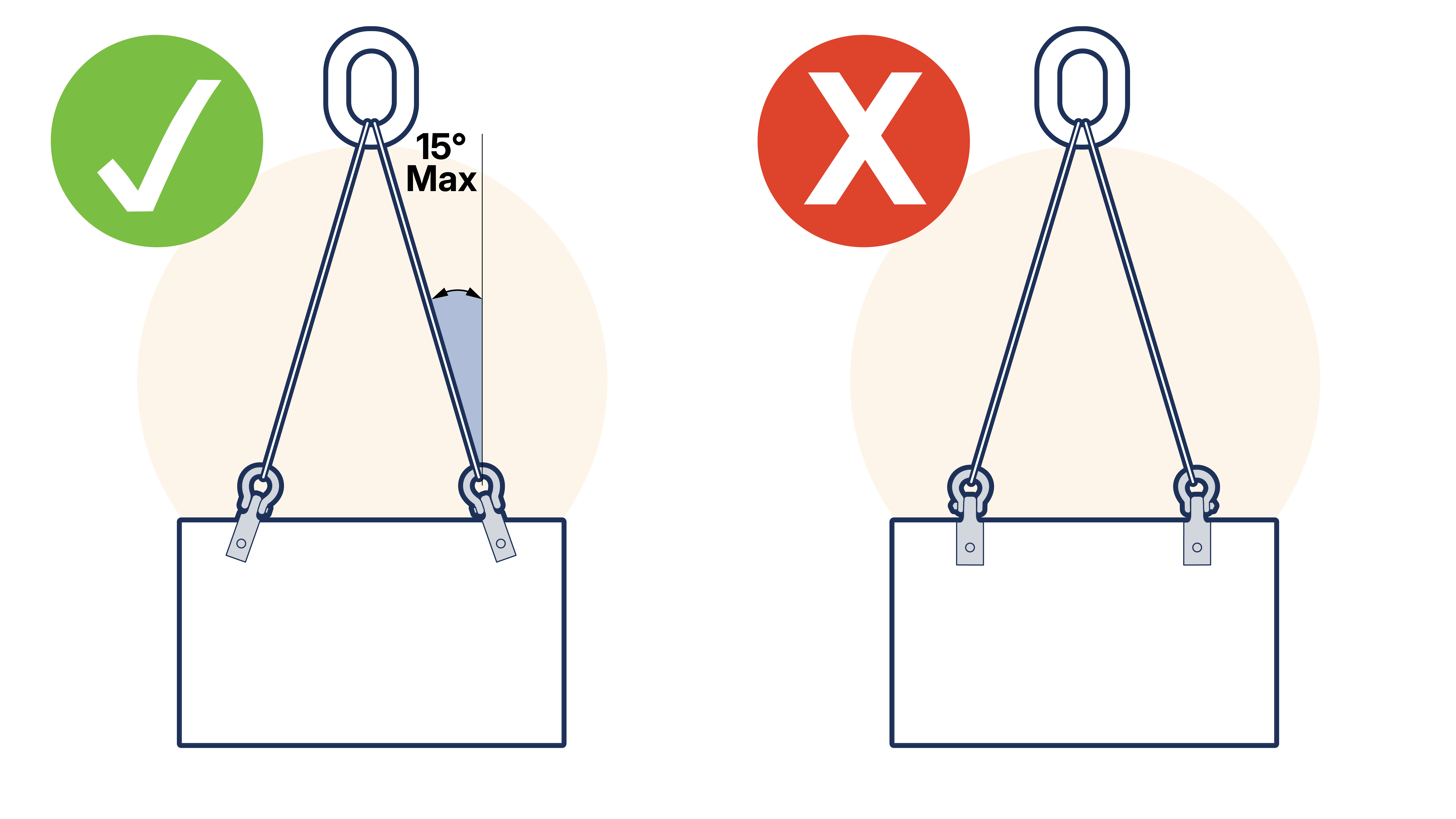 All plate clamps, except those capable of accommodating a lifting load applied at an angle to the side plates of the clamp, should always align with the chain or sling leg.