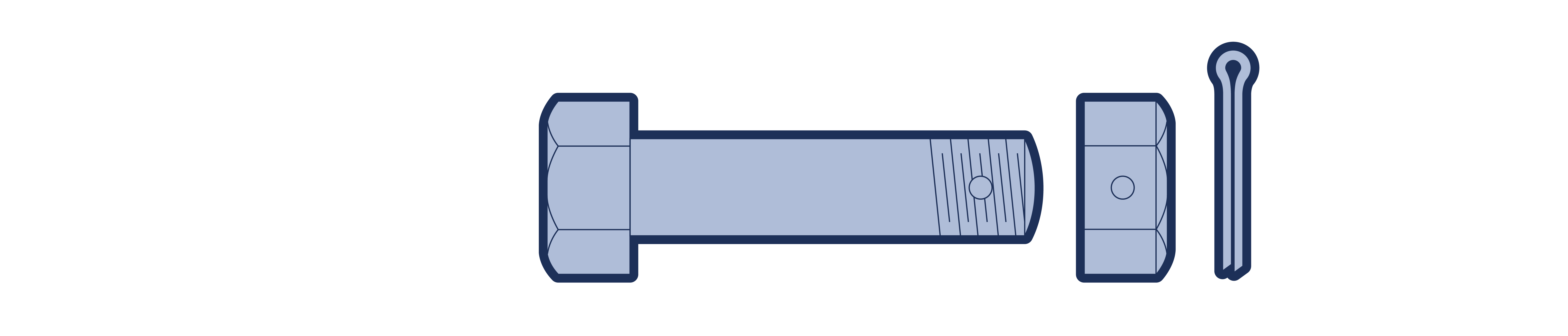 Figure 19.4.3-5 Bolt with hexagon head, hexagon nut and split cotter pin (types E and X)