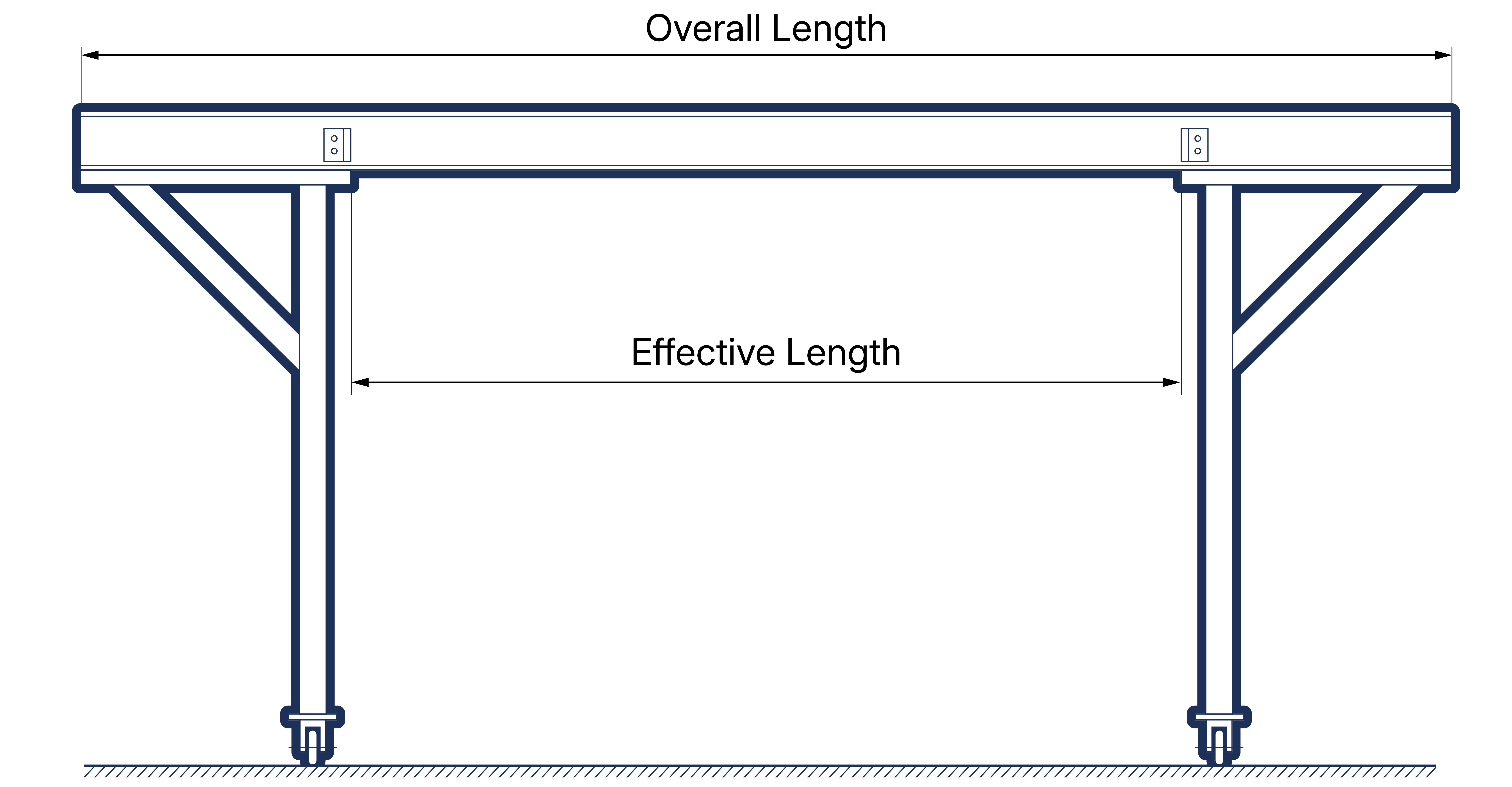The effective length of a mobile supporting structure is the distance the lifting appliance and trolley may travel along the runway between the end (travel) stops.